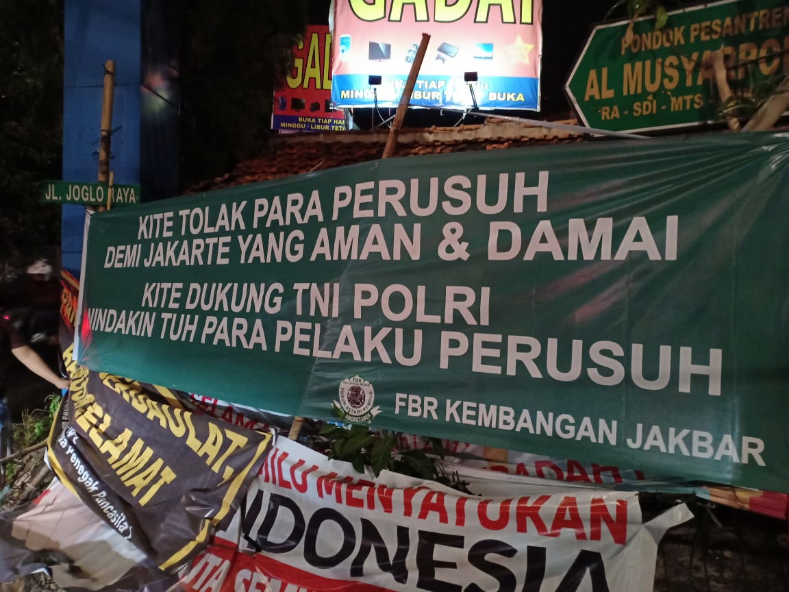 Tolak Kerusuhan, Warga Jakarta Barat Pasang Spanduk Perdamaian