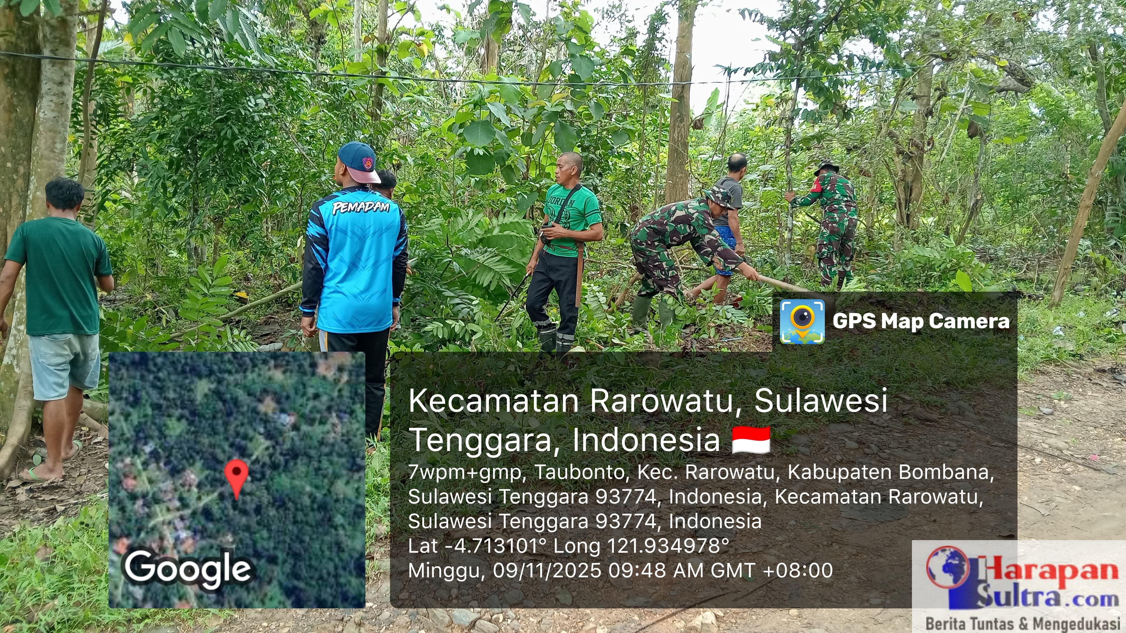 Bombana, Harapansultra.com – Dalam upaya menjaga kebersihan dan kenyamanan lingkungan, Babinsa Koramil 1431-01/Rumbia bersama masyarakat Kelurahan Tauabonto, Kecamatan Rarowatu, Kabupaten Bombana, melaksanakan kegiatan kerja bakti membersihkan kanan kiri jalan dan Drainase. Minggu (9/11/2025). Kegiatan ini mendapat sambutan hangat dari warga yang turut berpartisipasi secara gotong royong.
