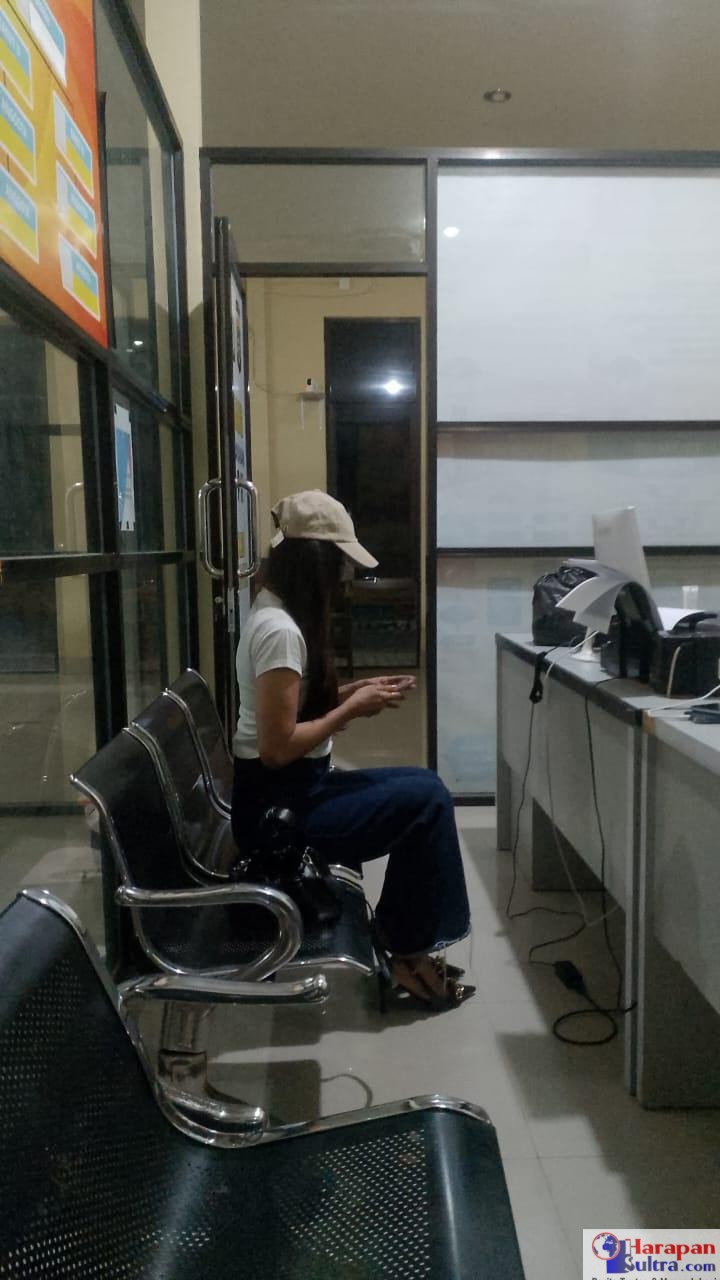Pemilik Loundry Wa Ode RY saat melaporkan HN ke Polres Buton Utara.