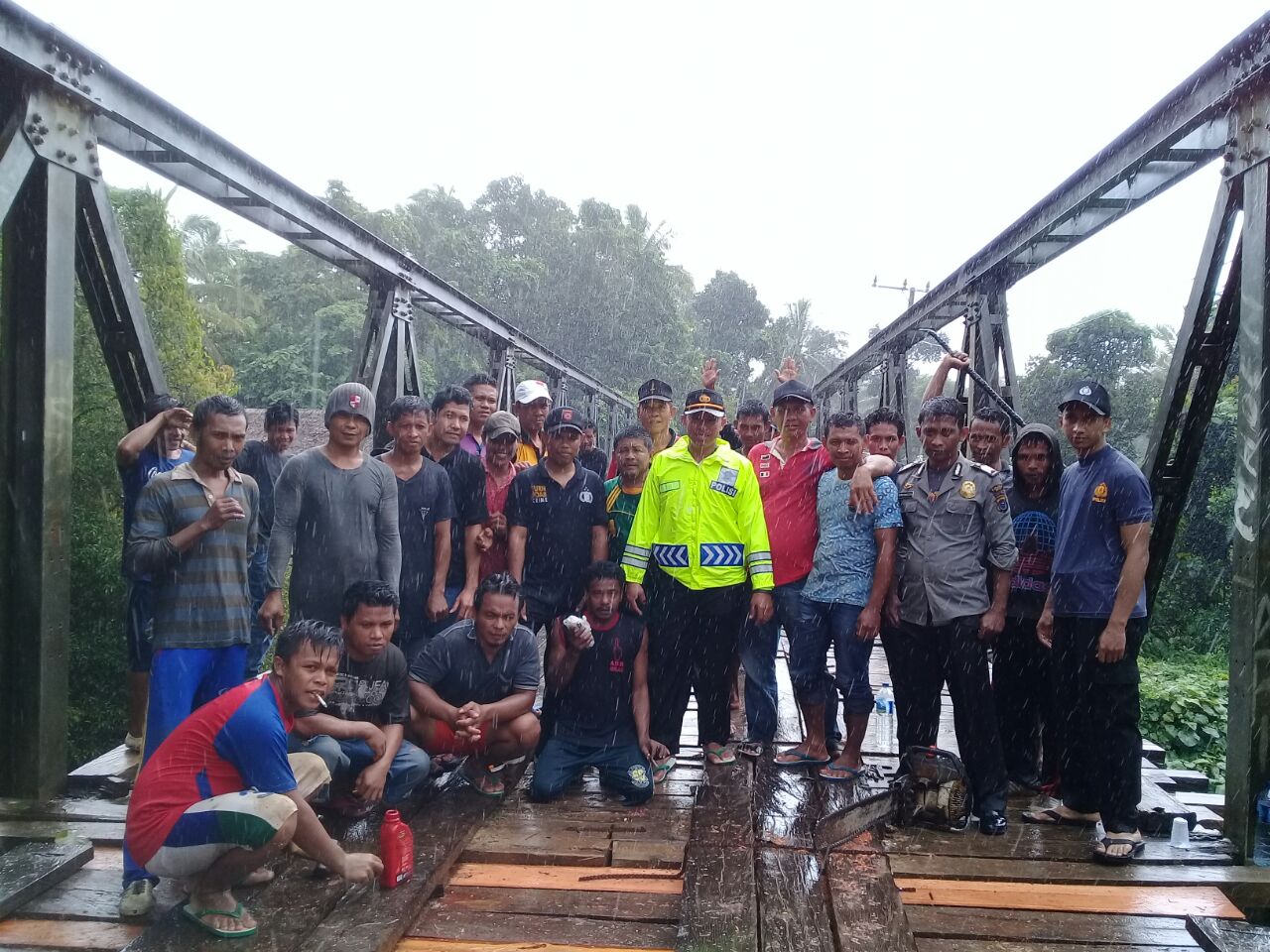 Dalam kondisi hujan, namun tak menyurutkan niat anggota polsek Kulisusu Barat bersama masyarakat setempat untuk memperbaiki jembatan tersebut hingga kondisi jembatan tersebut telah layak dan siap digunakan.