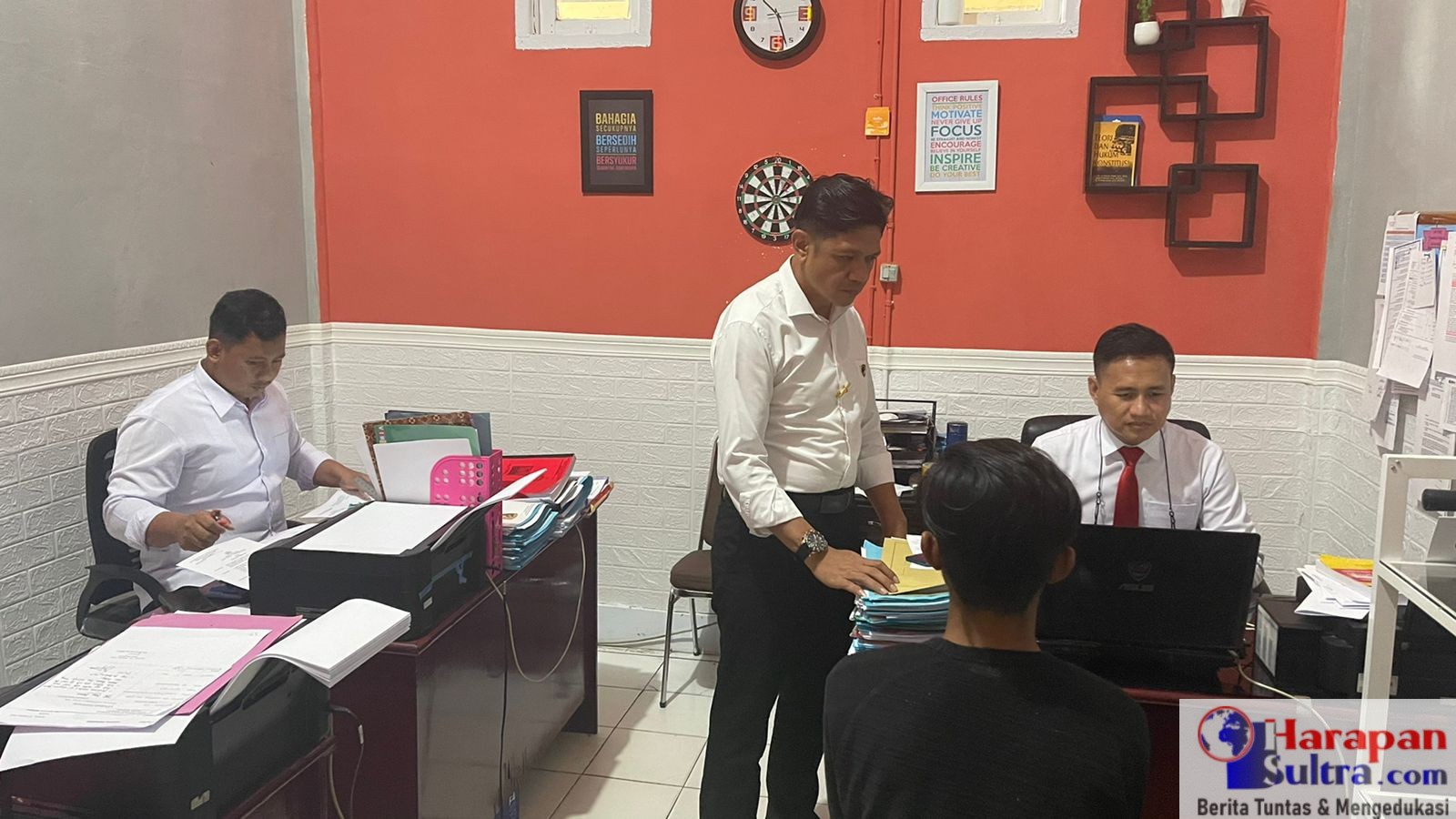 KBO Reskrim Polres Bombana, IPDA Prasetyo Nento, S.H (Berdiri) saat melakukan Pemeriksaan Terhadap Pelaku