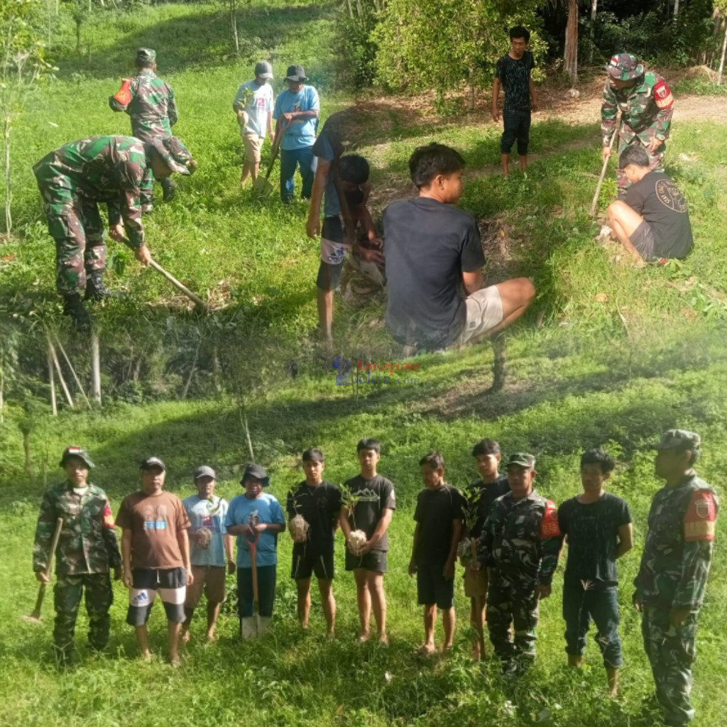 Sejak pagi, suasana kebersamaan begitu terasa. Babinsa dan masyarakat bergotong royong menanam pohon di sejumlah titik rawan genangan dan erosi. Tanah yang sebelumnya gersang perlahan berubah menjadi lahan hijau, mencerminkan kepedulian bersama terhadap masa depan lingkungan desa.